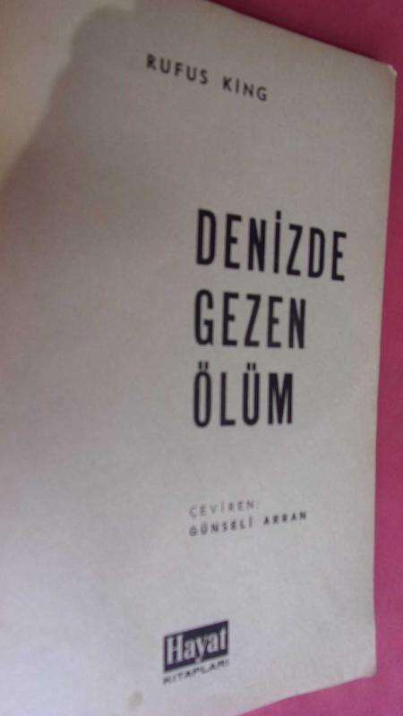DENİZDE GEZEN ÖLÜM, RUFUS KING tarafından kaleme alınmıştır. Kitap 1966 yılında HAYAT YAYINLARI tarafından [İSTANBUL] yayınlanmıştır. Bu baskının çevirisi GÜNSELİ ARRAN tarafından yapılmıştır. 159 sayfadır. DENİZDE GEZEN ÖLÜM adlı eser Türkçe dilindedir.