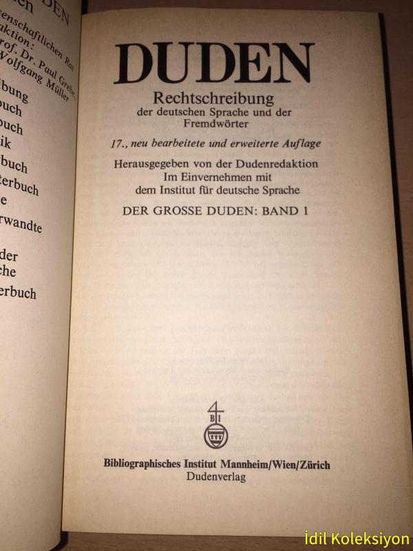 Eser - editörlüğünde hazırlanmıştır. Kitap 1973 yılında Duden Verlag tarafından [Mannheim] - ISBN kodu ile yayınlanmıştır. Bu baskının çevirisi - tarafından yapılmıştır. 793 sayfadır. Sayfa bilgisi - olarak belirtilmiştir. DER GROSSE DUDEN : BAND I - Duden Rechtschreibung der deutschen Sprache und der Fremdwörter - Almanca Kitap (BÜYÜK DÜDEN: CİLT I - Almancanın Düden Yazılışı ve Yabancı Kelimeler ) adlı eser Almanca dilindedir.