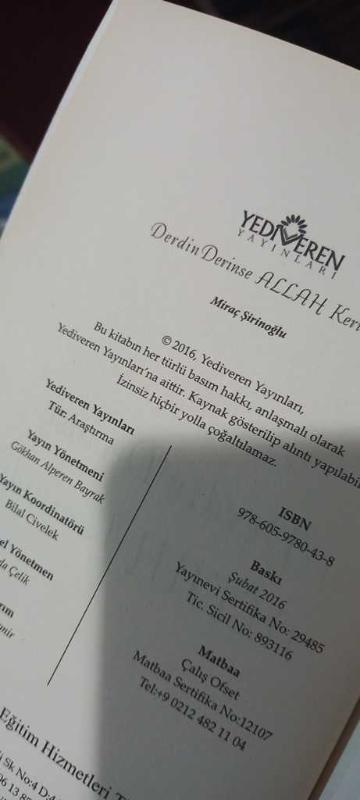 DERDİN DERİNSE ALLAH KERİM, Miraç Şirinoğlu tarafından kaleme alınmıştır. Kitap 2016 yılında Yediveren Yayınları tarafından [İstanbul] yayınlanmıştır. DERDİN DERİNSE ALLAH KERİM adlı eser Türkçe dilindedir.