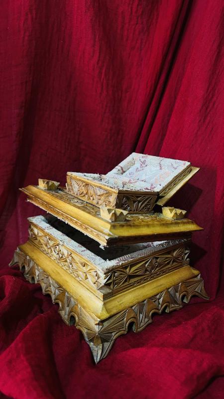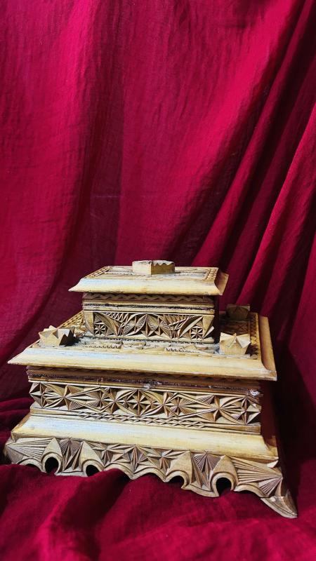 DETAYLI İNCE İŞÇİLİK SANDIK başlıklı antika/koleksiyon objesi Türkiye menşe’lidir. Objenin ait olduğu dönem bilinmeketedir.