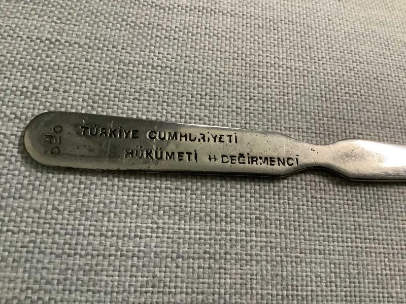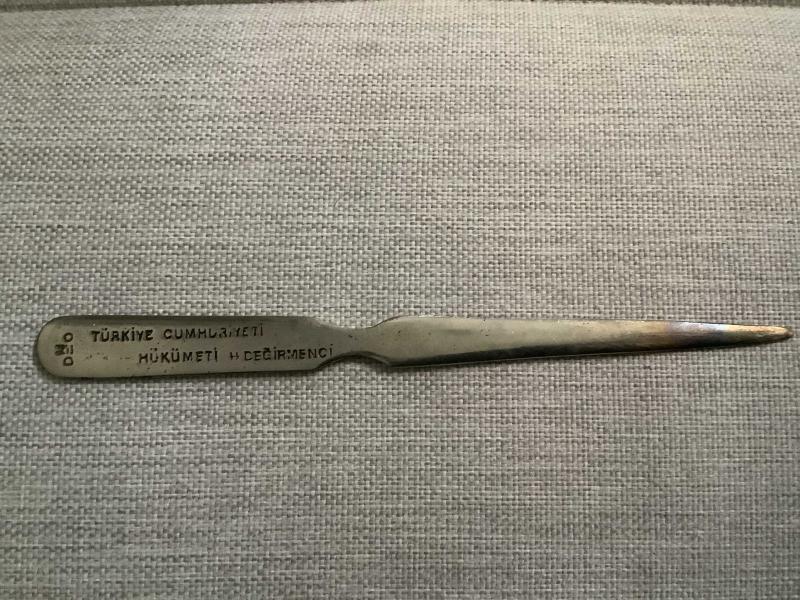 DEVLET MALZEME OFİSİ ZARF AÇACAĞI başlıklı antika/koleksiyon objesi Türkiye menşe’lidir. 1960-1979 arası dönemine aittir.
