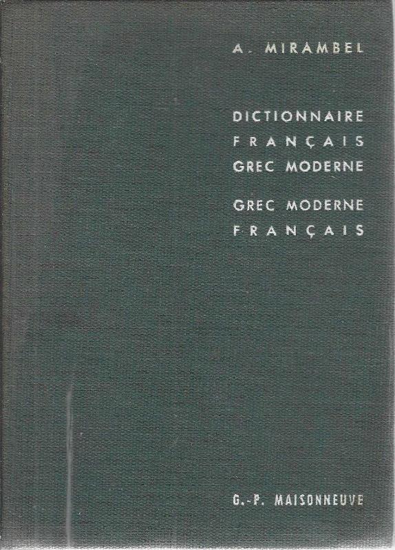 DICTIONNAIRE FRANÇAIS-GREC MODERNE ET GREC MODERNE-FRANÇAIS, A. MIRAMBEL tarafından kaleme alınmıştır. Kitap 1960 yılında G.P. MAISONNEUVE tarafından [PARİS] yayınlanmıştır. 483 sayfadır. DICTIONNAIRE FRANÇAIS-GREC MODERNE ET GREC MODERNE-FRANÇAIS adlı eser Fransızca dilindedir. Eserin içeriğinde Yunanca dilinde bölümlere de yer verilmektedir.