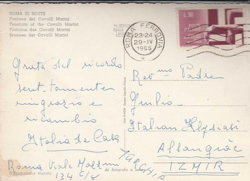 DİN TARİHİ - 1965 YILI İTALYA DAN İZMİR ALSANCAK KİLİSE YE GÖNDERİLMİŞ ROMA ÇEŞME GÖRSELLİ KARTPOSTAL, 11 ay önce satışa sunulmuştur.