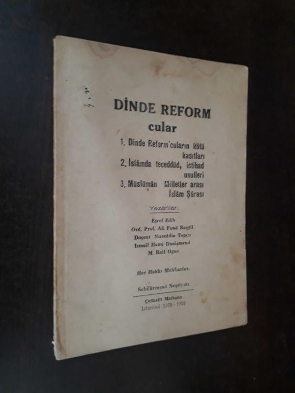 DİNDE REFORMCULAR, EŞREF EDİB, ORD. PROF. ALİ FUAT BAŞGİL, DOÇENT NURETTİN TOPÇU, İSMAİL HAMİ DANİŞMEND tarafından kaleme alınmıştır. Kitap 1959 yılında ÇELİKCİLT MATBAASI tarafından yayınlanmıştır. 56 sayfadır. DİNDE REFORMCULAR adlı eser Türkçe dilindedir.
