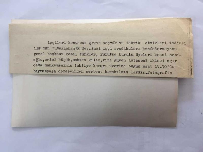 DİSK GENEL BAŞKANI KEMAL TÜRKLER'İN ORİJİNAL 2'Lİ FOTOĞRAF SETİ - 18 x 12 cm EBADINDA - İŞÇİLERİ KANUNSUZ GREVE TEŞVİK ve TAHRİK ETTİKLERİ İDDİASI İLE TUTUKLANAN KEMAL TÜRKLER, YÜRÜTME KURULU ÜYELERİ KEMAL NEBİOĞLU, CELAL KÜÇÜK, MEHMET KILIÇ ve RIZA GÜVEN İSTANBUL İKİNCİ AĞIR CEZA MAHKEMESİNİN TAHLİYE KARARI ÜZERİNE BAYRAMPAŞA CEZAEVİNDEN SERBEST BIRAKILDILAR. 23 EYLÜL 1976, 7 ay önce satışa sunulmuştur.