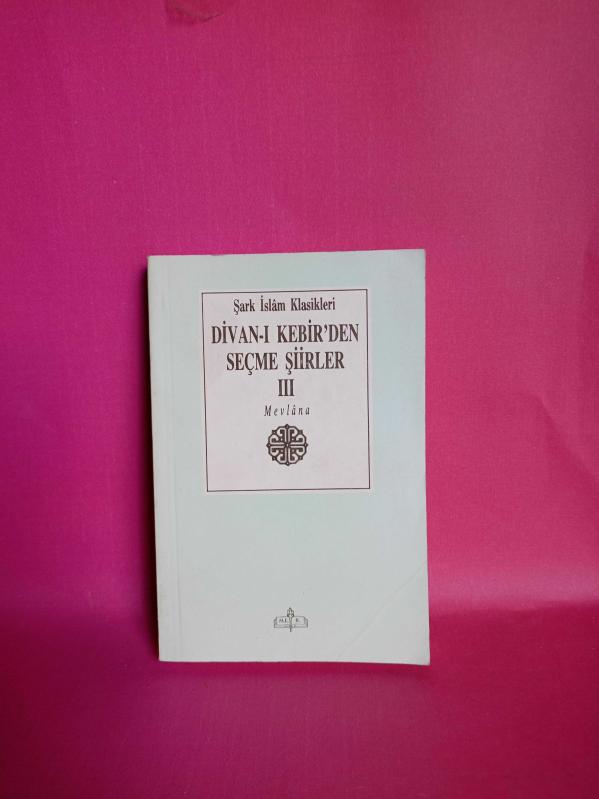 DİVAN-I KEBİRDEN SEÇME ŞİİRLER III (2.EL), MEVLANA tarafından kaleme alınmıştır. Kitap 1995 yılında MEB tarafından yayınlanmıştır. Bu baskının çevirisi MİTHAT BAHARİ BEYTUR tarafından yapılmıştır. 320 sayfadır. DİVAN-I KEBİRDEN SEÇME ŞİİRLER III (2.EL) adlı eser Türkçe dilindedir.