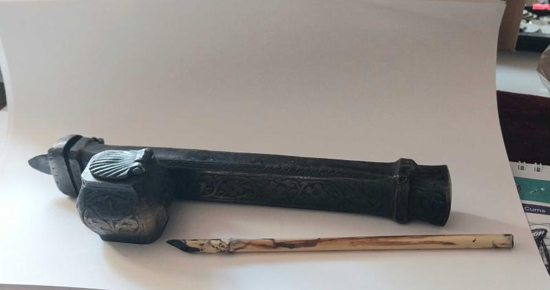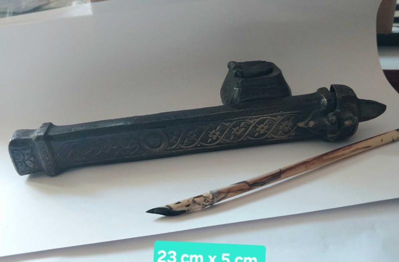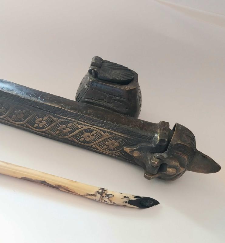 DİVIT, PİRİNÇ DİVİT..YAZI KALEMİ İLE BERABER.. başlıklı antika/koleksiyon objesi Türkiye menşe’lidir. 1940 sonrası dönemine aittir.