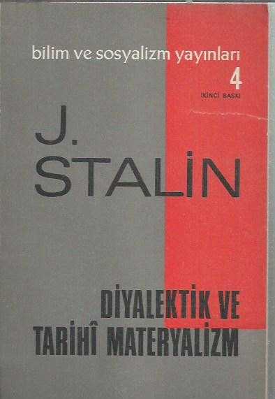DİYALEKTİK MATERYALİZM VE TARİHSEL MATERYALİZM, J. STALİN tarafından kaleme alınmıştır. Kitap 1989 yılında BİLİM VE SOSYALİZM YAYINLARI tarafından [ANKARA] yayınlanmıştır. Bu baskının çevirisi ZEYNEP SEYHAN tarafından yapılmıştır. 55 sayfadır. DİYALEKTİK MATERYALİZM VE TARİHSEL MATERYALİZM adlı eser Türkçe dilindedir.