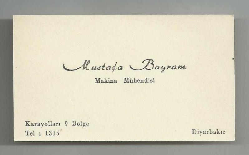** MUSTAFA BAYRAM KARTVİZİTİ ** Gayet iyi durumda,arkası yazılı eski kartvizit...