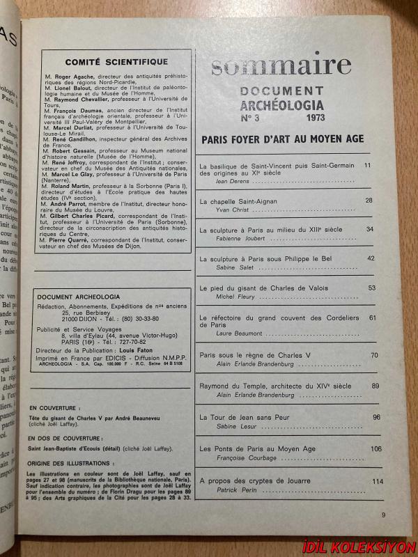 DOCUMENT - ARCHEOLOGİA - NO.3 1973 / PARİS FOYER D'ART AU MOYEN AGE / FRANSIZCA DERGİ (JEAN DERENS / YVAN CHRİST / FABİENNE JOUBERT / SABİNE SALET / MİCHEL FLEURY / LAURE BEAUMONT / ALAİN ERLANDE BRANDENBURG / SABİNE LESUR / FRANÇOİSE COUBAGE / PATRİCK PERİN) HAFİF YIPRANMIŞ