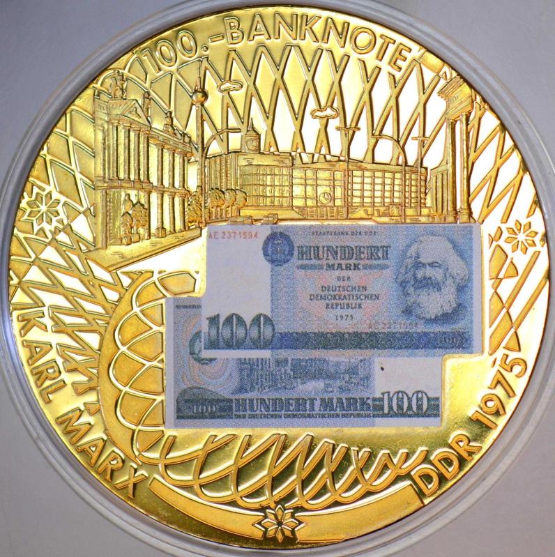 DOĞU ALMANYA 100 MARK DDR 1975-KARL MARX TEMALI MADALYON 2002. ALTIN KAPLAMA 50 mm 52,6 gr. KAPSÜLÜNDE ÇİL., 24 gün önce satışa sunulmuştur.
