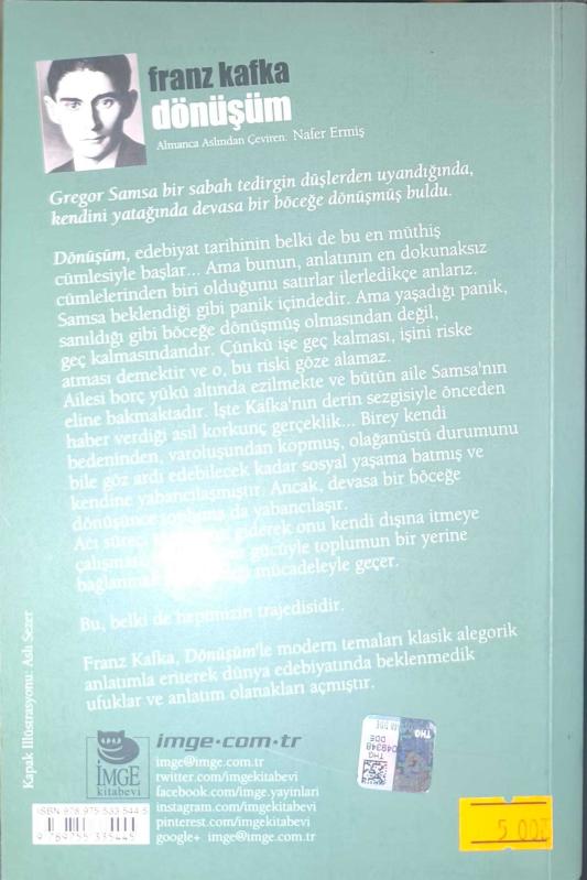 📘 Kitap Hakkında: “Dönüşüm”, Franz Kafka’nın modern edebiyatın simge eserlerinden biri olan kısa romanıdır. Bir sabah kendini dev bir böceğe dönüşmüş olarak bulan Gregor Samsa’nın yaşadıkları üzerinden, bireyin toplum ve aile içindeki konumu anlatılır. 🗣️ Arka Kapak Metninden Hareketle: Bu eser, yabancılaşma, yalnızlık ve suçluluk duygularını sıradışı bir olay örgüsüyle görünür kılar. Kafka, bireyin anlaşılmama hâlini ve insanın kendi hayatında nasıl bir yük hâline gelebildiğini soğukkanlı ve sarsıcı bir dille ele alır. “Dönüşüm”, insanın varoluşuna dair evrensel soruları gündeme getirmeyi amaçlar. 👤 Kimler Okumalı: • Modern klasiklere ilgi duyanlar • Yabancılaşma ve varoluş temalı metinleri sevenler • Franz Kafka okurları