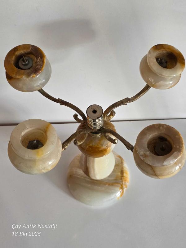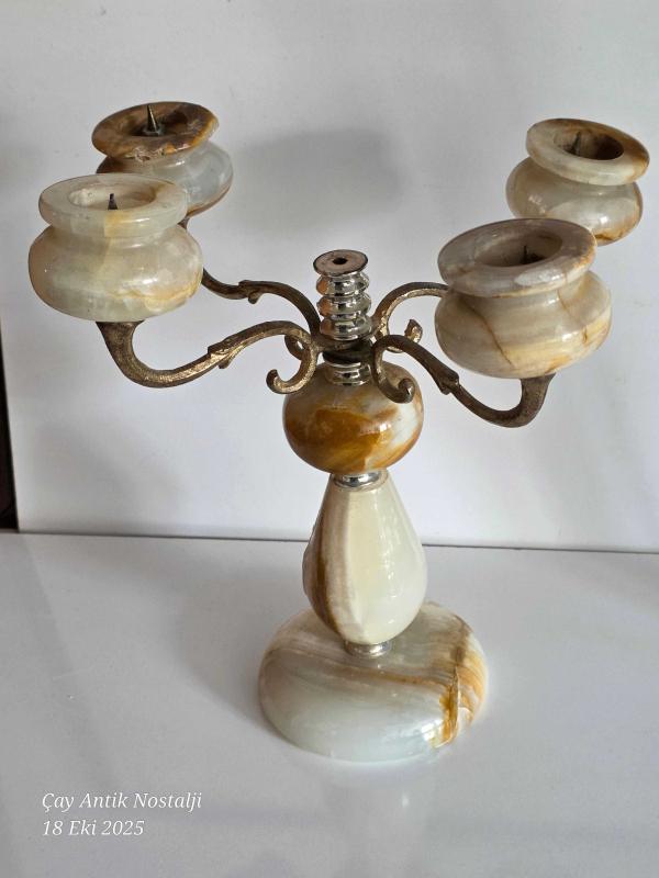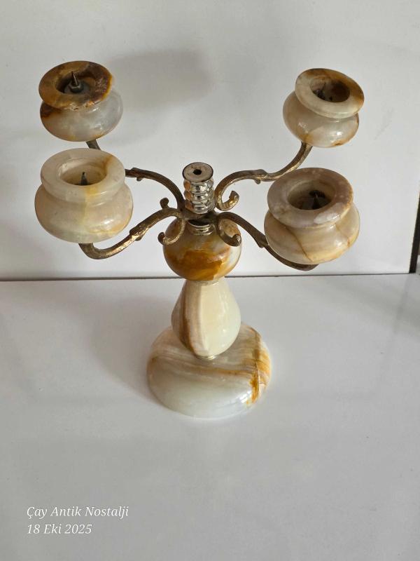DÖRT KOLLU MERMER DEKORLU PİRİNÇ ŞAMDAN ORTA MUMLUK EKSİK, 8 gün önce kitantik’te satışa sunulmuştur.