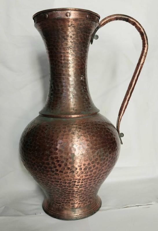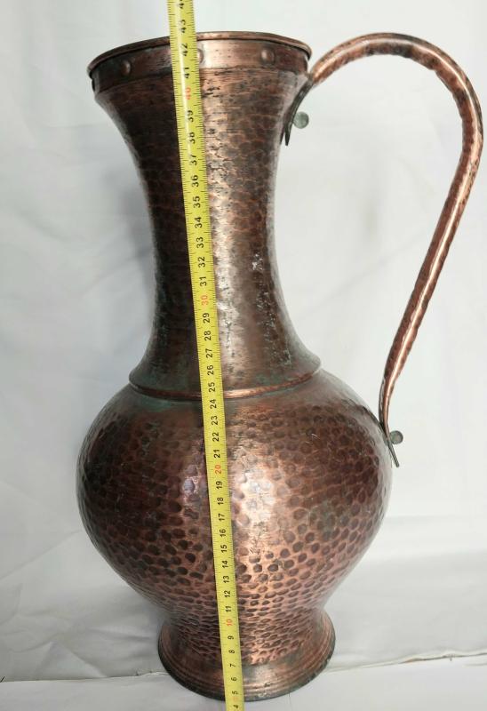 DÖVME BAKIR, FAS VEYA CEZAYİR ÜRETİMİ DÖVME BAKIR SÜRAHİ FORMUNDA DEVASA BÜYÜKLÜKTE 43 X 24 CM EBATLARINDA, USTA İŞİ BAKIRDAN MAMÛL, ALT TABAN KISMINDA YAZILAR VE FLORAL DESENLERİ OLAN MUHTEŞEM İŞÇİLİKLİ, DEKORLUK VE KOLEKSİYONLUK BİR ÜRÜNDÜR., 2 yıl önce kitantik’te satışa sunulmuştur.