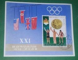 KUZEY KORE MENŞELİ,1976 MONTREAL YAZ OLİMPİYAT OYUNLARI İÇİN ÇIKARTILMIŞ PULDUR. KONDİSYONU YÜKSEK DURUMDADIR.