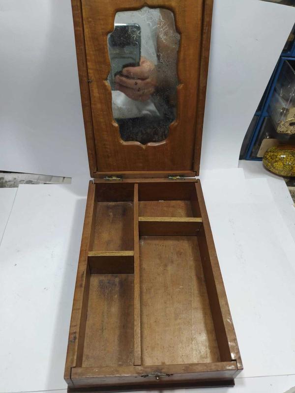DR10--------ANTİKA AYNALI CEVİZ AĞACI TRAŞ KUTUSU başlıklı antika/koleksiyon objesi Avrupa menşe’lidir. 2000 ve sonrası dönemine aittir.