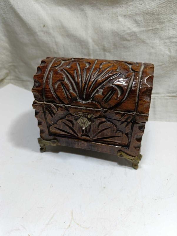 DR17----PİRİNÇ AYAKLI CEVİZ OYMA ESKİ AHŞAP KUTU, 10 ay önce kitantik’te satışa sunulmuştur.