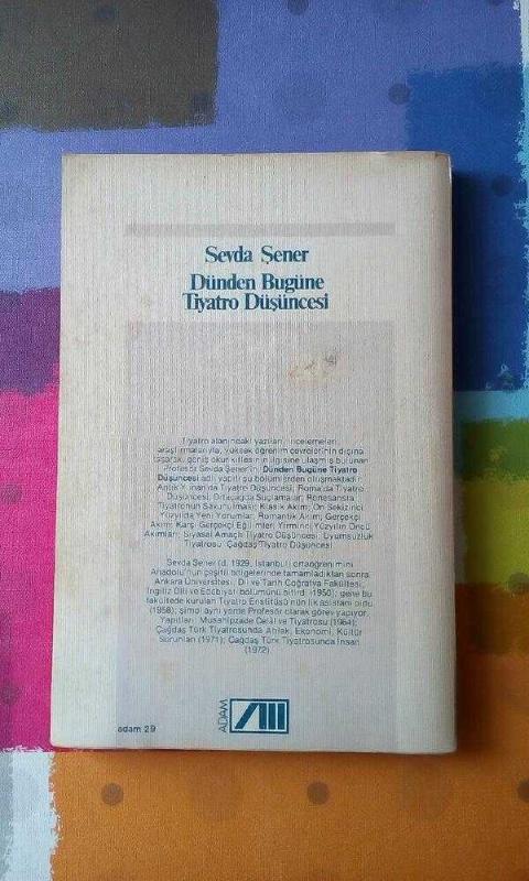 DÜNDEN BUGÜNE TİYATRO DÜŞÜNCESİ.., Sevda Şener tarafından kaleme alınmıştır. Kitap 1982 yılında Adam Yayıncılık tarafından yayınlanmıştır. Satışta olan kitap, yayınevinin 1. baskısıdır. DÜNDEN BUGÜNE TİYATRO DÜŞÜNCESİ.. adlı eser Türkçe dilindedir.