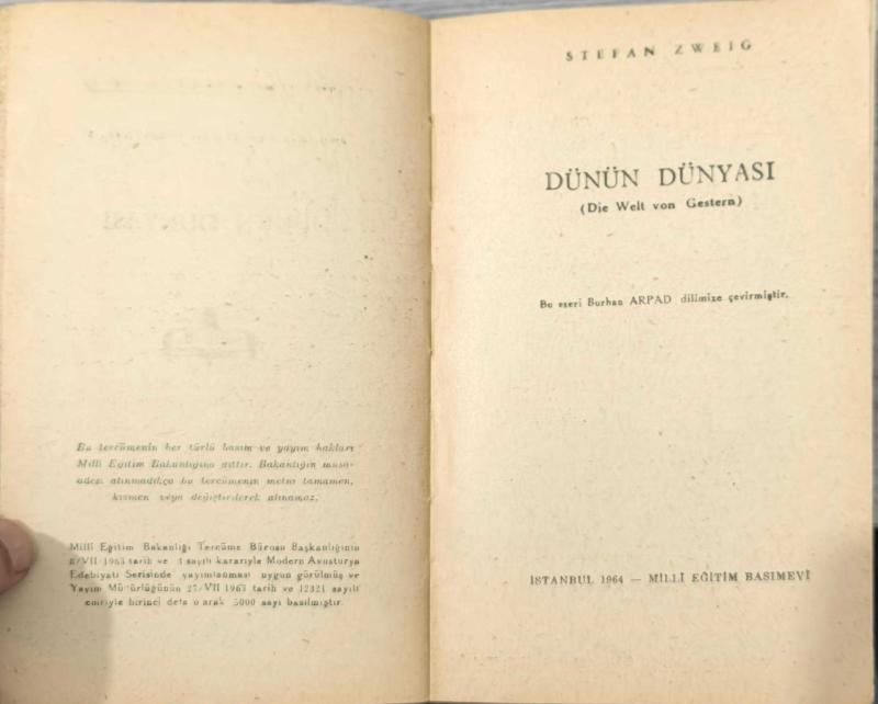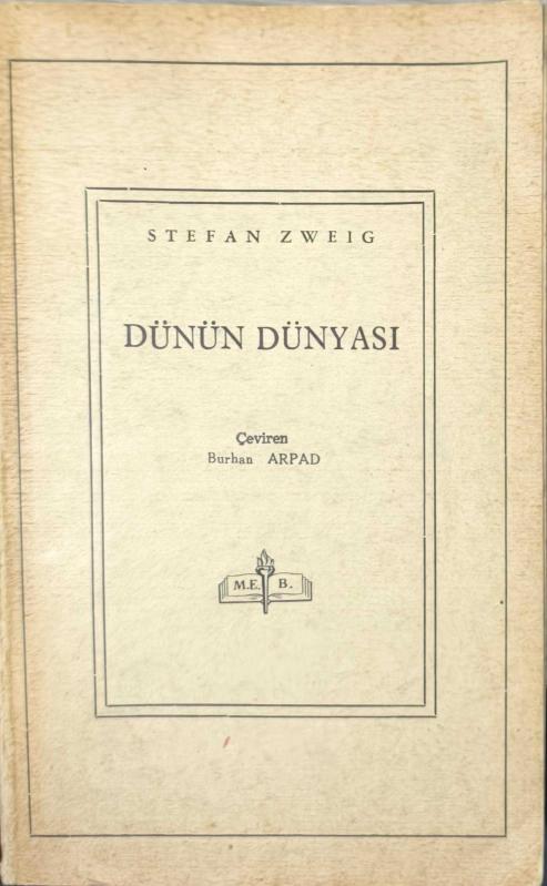 DÜNÜN DÜNYASI, STEFAN ZWEIG tarafından kaleme alınmıştır. Kitap 1964 yılında MİLLİ EĞİTİM BASIMEVİ tarafından [İSTANBUL] yayınlanmıştır. Bu baskının çevirisi BURHAN ARPAD tarafından yapılmıştır. 539 sayfadır. DÜNÜN DÜNYASI adlı eser Türkçe dilindedir.