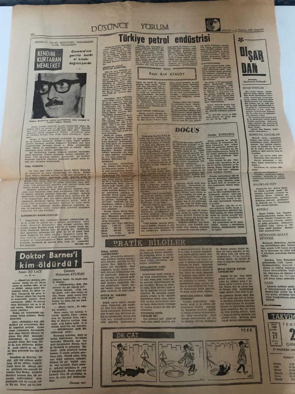 DÜNYA GAZETESİ - DOĞUM GÜNÜ HEDİYESİ (TURKISH NEWSPAPPER) - 2 TEMMUZ 1969 - SADECE TEK YAPRAKTIR -Süleyman Demirel-Rauf Denktaş-Wernher Von Braun-Reşit Akif ATASOY-Muhterem Selimoğlu-Necdet KUTBAY-Ed Lacy-Muhterem Atlıkan-Başbakan uçakla Ankara’dan İstanbul’a geldi-Büyük sanayi tesislerinin temelleri bugün atılıyor-Başbakan ve bakanlar Taşkızak’ta denize indirilen tanker ve hücumbotların töreninde bulundular-Kabotaj ve Denizcilik Bayramı dün kutlandı-Kok kömürü dağıtımına başlanıyor-Füzelerin babası büyük bilgin Von Braun İstanbul’da başka isime dolaştı-Kurdaş 30 Kasımda görevinden ayrılıyor-İşgal sırasında Kriminoloji Enstitüsünden 13 tabanca ile 7 bıçağın kaybolduğu anlaşıldı-Apollo 11 Ay yolunda Yarın başlıyoruz-Spor Efendi Mesleği-POLİTİKA-Türkiye petrol endüstrisi-DIŞARDAN-DÖĞÜŞ-Kendini kurtaran memleket-Guevara’nın gerilla harbi el kitabı dağıtılıyor-Doktor Barnes’i kim öldürdü-PRATİK BİLGİLER-İshali neden olmaktadır-Analarınızın sağlığı için-Soguk su zararlı olur mu-Patatesli so adlı eser Türkçe dilindedir.