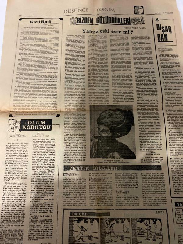 DÜNYA GAZETESİ - DOĞUM GÜNÜ HEDİYESİ (TURKISH NEWSPAPPER) - 25 NİSAN 1968 - SADECE TEK YAPRAKTIR -Makarios-Bedii FAİK-M Emin AYTEKİN-Necdet KURDAKUL-Nezih UZEL-John Ferguson-A P Genel Merkezi bazı adayları kabul etmedi-Ankara dışında AP Belediye Başkanı adayları yoklama ile seçilecekler-Veto edilen Belediye Meclisi üyelerinin ihracı isteniyor-Doğu Mitingi sanıkları dün yargılandı-Öğrenci dekanı öldürdü-Öğrencilerin avukatları dün de hâkim ile tartıştı-Fevzioğlu Türk İşe çatanlara çattı-Teknik Üniversite öğrencisi Erbil’in bıçakladığı Profesör Müftüoğlu öldü-Bombacı Kemal gene hapiste-Dil Akademisi kurulması isteniyor-Arsa spekülasyonu için tahkikat açıldı-Amerika SEATO ve Vietnam-BİZDEN GÖTÜRDÜKLERİ-Yalnız eski eser mi-DIŞARDAN-Bayan Sinatra nişanlandı-Flachların dedikleri çıktı-PRAKTİK BİLGİLER-İnsan ümitsiz yaşayabilir mi-Evin bütçesini nasıl dengelemeli-Alerji neden olmaktadır-TAKVİM-Öldüren Kadın adlı eser Türkçe dilindedir.