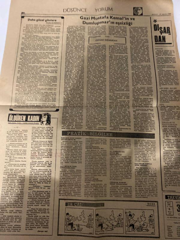 DÜNYA GAZETESİ - DOĞUM GÜNÜ HEDİYESİ (TURKISH NEWSPAPPER) - 30 AĞUSTOS 1968 - SADECE TEK YAPRAKTIR -Hubert Humphrey-Cenab Ozankan-Fatih Rıfkı Atay-Bedi Faik-30 Ağustos Zafer Bayramını kutluyoruz-G. Konseyi Çek meselesini gündemden çıkarmıyor-Çekler Avusturya ve Almanya’ya sığınıyorlar-Generalerin terfileri açıklandı-34 Albay General ve Amiralliğe yükseldi-Filonun gelişi için dün protesto mitingi yapıldı-Sunay Güven Yurdunu hizmete açtı-Romanya işgalin kalkmasını istiyor-Ertem eğitim faaliyetlerini açıkladı-Humphrey Başkan adaylığına seçildi-50 yıl sonunda-B. Amerika’nın Guatemala Büyükelçisi öldürüldü-Daha güzel günlere-Gazi Mustafa Kemal’in ve Dumlupınar’ın eşsizliği-DIŞARDAN-Öldüren kadın-Pratik bilgiler-DR CAT-TAKVİM adlı eser Türkçe dilindedir.
