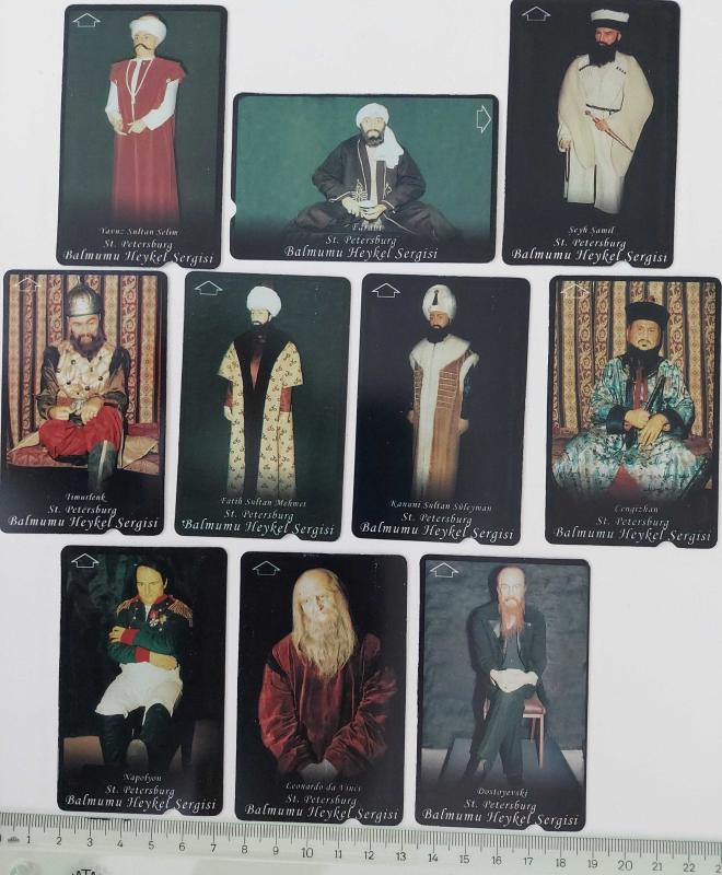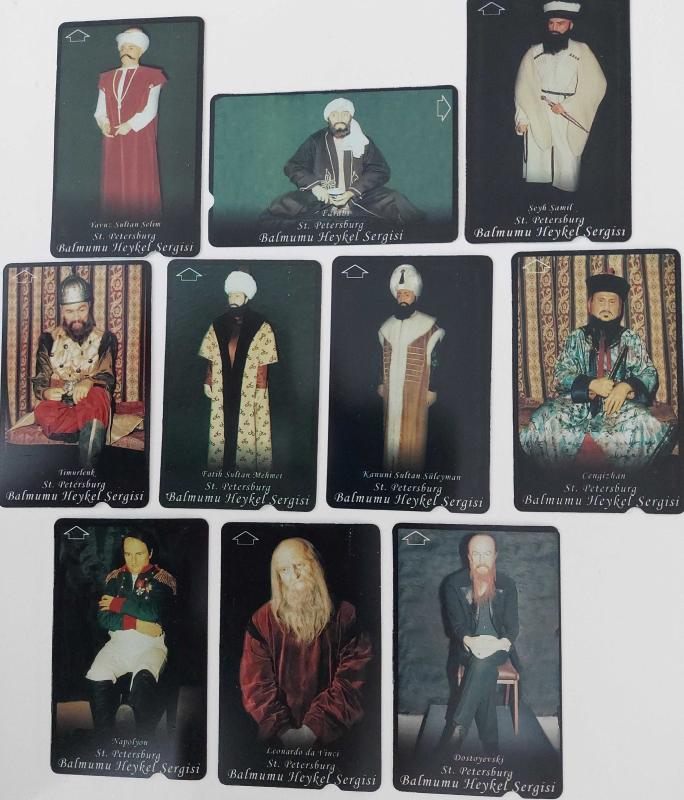 DÜNYA MEŞHURLARI BALMUMU HEYKEL SERGİSİ TELEFON KARTLARI 30 KONTÖRLÜK TAM SET 10 ADET 2HH2R1, en son 4 ay önce güncellenmiştir.