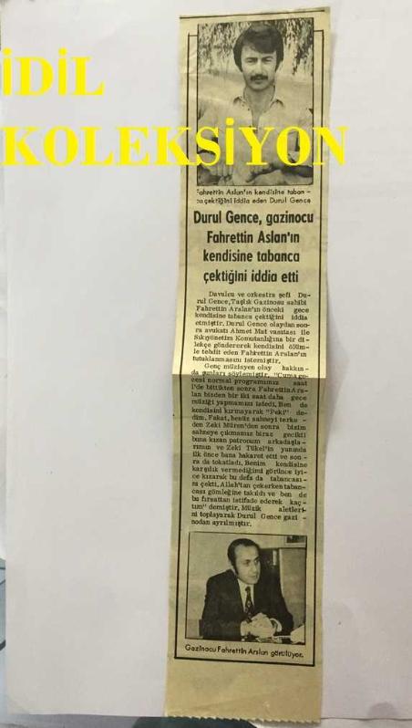 DURUL GENCE'NİN GAZETEDEN KESİLME FOTOĞRAFLI HABER KÜPÜRÜ - 28 x 6 cm EBADINDA - ''DURUL GENCE, GAZİNOCU FAHRETTİN ASLAN'IN KENDİSİNE TABANCA ÇEKTİĞİNİ İDDİA ETTİ'', en son 6 ay önce güncellenmiştir.