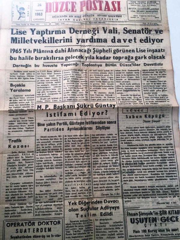 DÜZCE DÜZCE POSTASI GAZETESİ İNSAN HAKLARI DAVAMIZDIR YEREL TAŞRA BASINI - 24 Temmuz 1963 YIL :15 SAYI :2391- Lise Yaptırma Derneği Vali , Senatör Ve Milletvekillerini Yardıma Davet Ediyor - M. P Başkanı Şükrü Güntay İstifamı Ediyor - Sabun Köpüğü İhsan Şimşek - İş ve İşçi Bulma Kurumu Vasıtalı İş Yapamayacak - Konferans Başkanın Gayesi - Almanya bir çok ülkelerdeki kalkınma hareketlerini finanse ediyor - Banguoğlu 'nun çalımı para etmedi - Bolu 'nun Eski Şehirleri Ve Bolu Paraları Yazan : Enver Konukçu - Yıpranma, sararmalar, kupon kesiği ve yırtılmalar zamana bağlı olarak görülebilir.