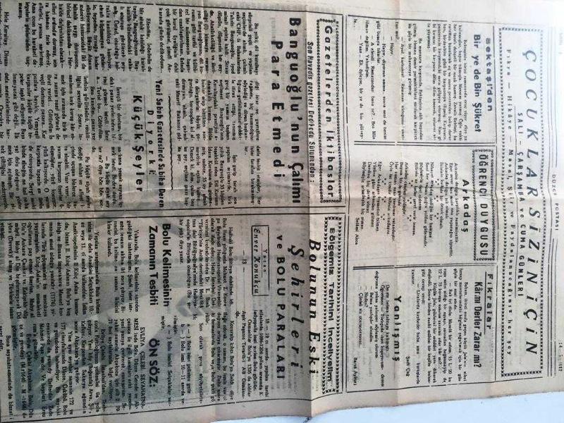 DÜZCE DÜZCE POSTASI GAZETESİ İNSAN HAKLARI DAVAMIZDIR YEREL TAŞRA BASINI - 24 Temmuz 1963 YIL :15 SAYI :2391- Lise Yaptırma Derneği Vali , Senatör Ve Milletvekillerini Yardıma Davet Ediyor - M. P Başkanı Şükrü Güntay İstifamı Ediyor - Sabun Köpüğü İhsan Şimşek - İş ve İşçi Bulma Kurumu Vasıtalı İş Yapamayacak - Konferans Başkanın Gayesi - Almanya bir çok ülkelerdeki kalkınma hareketlerini finanse ediyor - Banguoğlu 'nun çalımı para etmedi - Bolu 'nun Eski Şehirleri Ve Bolu Paraları Yazan : Enver Konukçu -, BEDRETTİN MARADİL tarafından kaleme alınmıştır. Kitap 1951 yılında [DÜZCE POSTASI MATBAASI ] yayınlanmıştır. 4 sayfadır. DÜZCE DÜZCE POSTASI GAZETESİ İNSAN HAKLARI DAVAMIZDIR YEREL TAŞRA BASINI - 24 Temmuz 1963 YIL :15 SAYI :2391- Lise Yaptırma Derneği Vali , Senatör Ve Milletvekillerini Yardıma Davet Ediyor - M. P Başkanı Şükrü Güntay İstifamı Ediyor - Sabun Köpüğü İhsan Şimşek - İş ve İşçi Bulma Kurumu Vasıtalı İş Yapamayacak - Konferans Başkanın Gayesi - Almanya bir çok ülkelerdeki kalkınma hareketlerini finanse ediyor - Banguoğlu 'nun çalımı para etmedi - Bolu 'nun Eski Şehirleri Ve Bolu Paraları Yazan : Enver Konukçu - adlı eser Türkçe dilindedir.