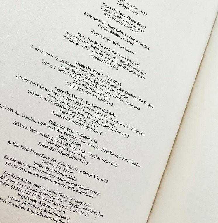 Dağın Öteki Yüzü Ortadirek Yer Demir Gök Bakır Ölmez Otu Özel Baskı, YAŞAR KEMAL tarafından kaleme alınmıştır. Kitap 2015 yılında Yapı Kredi Yayınları tarafından [istanbul] yayınlanmıştır. 837 sayfadır. Dağın Öteki Yüzü Ortadirek Yer Demir Gök Bakır Ölmez Otu Özel Baskı adlı eser Türkçe dilindedir.