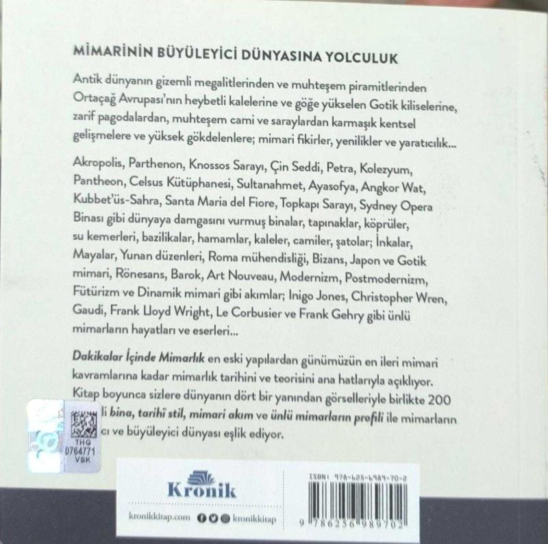 Dakikalar İçinde Mimarlık: Anında Açıklanan 200 Temel Kavram adlı eser, Kitap > Bilim, Teknik, Araştırma > Mimarlık ve Mühendislik kategorisinde Yeni olarak satıştadır.