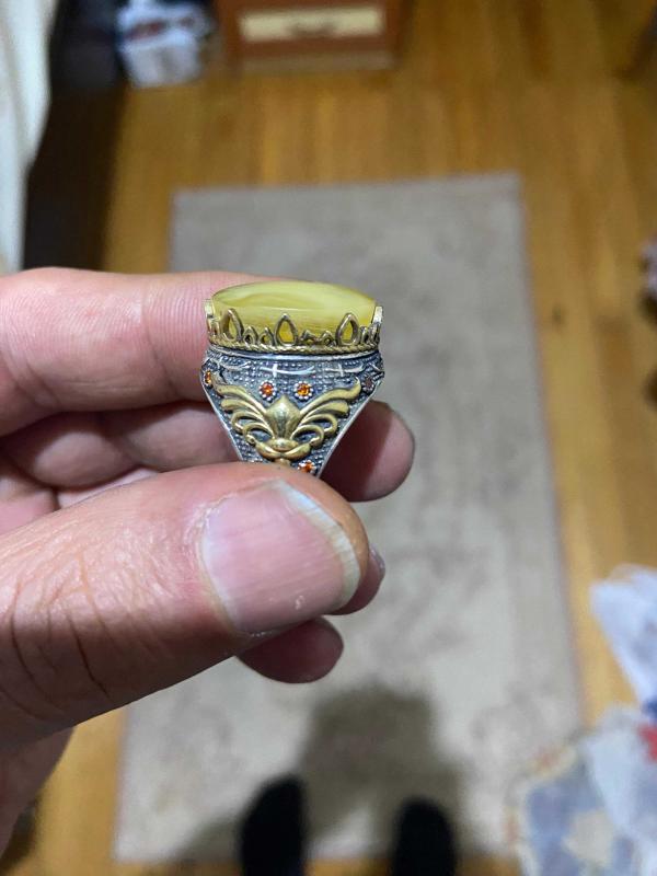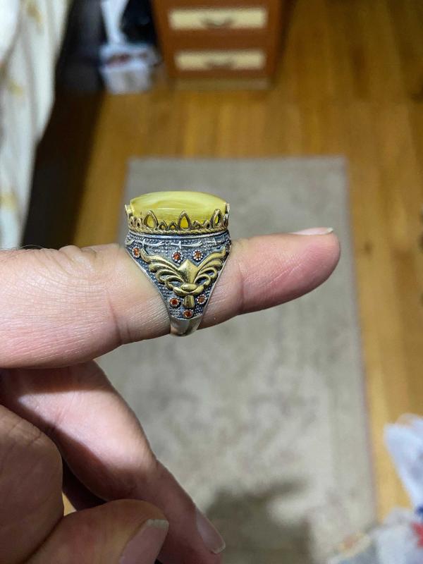 Damla kehribar taşlı 925 ayar gümüş yüzük 16 gram birinci sınıf has damla kehribar kayadan