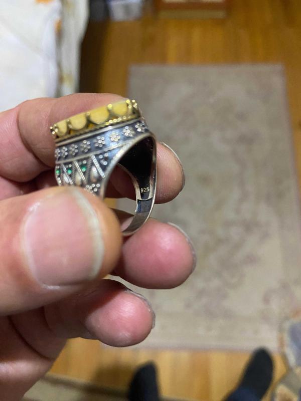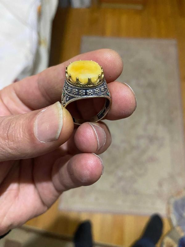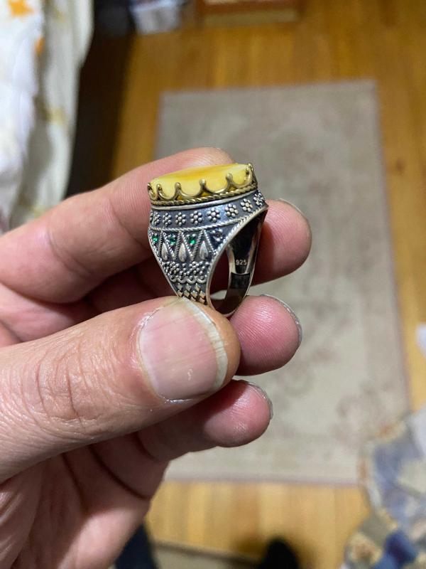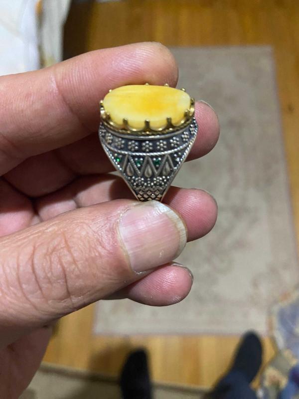 Damla kehribar taşlı 925 ayar gümüş yüzük 16 gram birinci sınıf has damla kehribar kayadan
