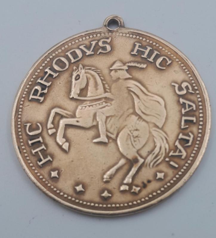 Danımarka HIC RHODVS HIC SALATA MADALYA başlıklı antika/koleksiyon objesi Avrupa menşe’lidir. 1900-1919 arası dönemine aittir.