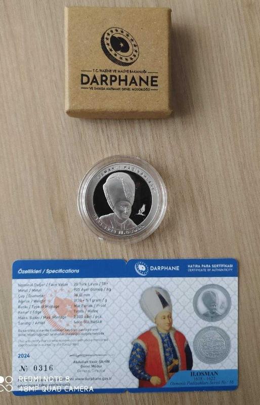 Darphane 2. Osman Gümüş Hatıra Para Osmanlı Padişahları Serisi No. 16, 8 ay önce satışa sunulmuştur.