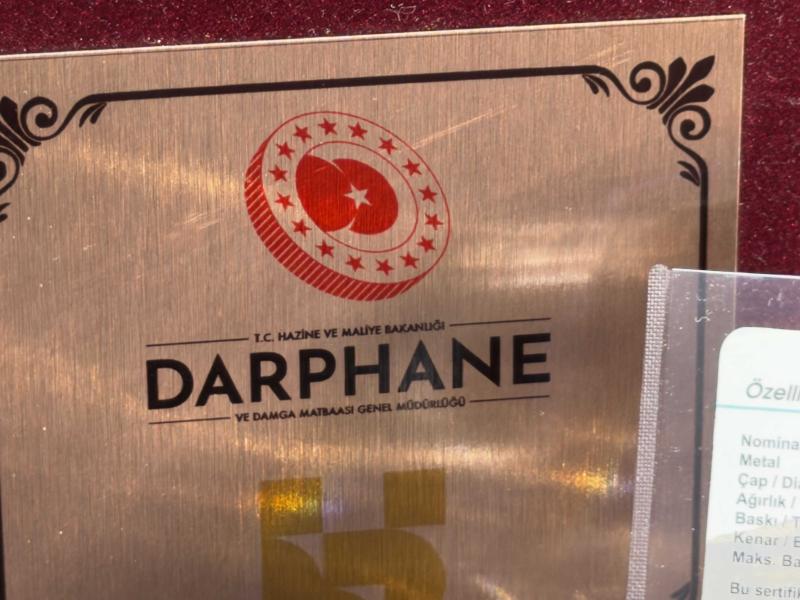 Darphane 555. Yıl Bronz (Okside) Hatıra Sikkesi – Özel Kutulu Osmanlı’dan Cumhuriyet’e uzanan köklü geçmişiyle Darphane’nin 555. kuruluş yılı anısına hazırlanan bu özel bronz hatıra sikke, yüzyılları aşan bir devlet geleneğini simgeleyen anlamlı bir koleksiyon eseridir. 1467 yılında temelleri atılan Darphane’nin tarihsel sürekliliği, bu sikkede hem sembolik hem de estetik bir anlatımla bir araya getirilmiştir. Bronz malzemeden üretilen sikke, oksitli (eskitme) baskı tekniği sayesinde derinlikli, karakterli ve zamansız bir görünüme sahiptir. Yüzeydeki mat–antika etki, tasarım detaylarını ön plana çıkarırken; klasik Darphane üslubunu yansıtan kompozisyon koleksiyon değeri açısından güçlü bir duruş sergiler. Tırtıllı kenar yapısı, sikkede hem geleneksel hem de nitelikli bir işçilik algısı oluşturur. Ön ve arka yüz tasarımlarında kullanılan tipografi ve semboller, Darphane’nin yüzyıllara yayılan kurumsal kimliğini vurgular. Özel kadife kutulu sunumu, ürünü yalnızca bir koleksiyon objesi olmaktan çıkararak; prestijli bir saklama ve sergileme formuna dönüştürür. Sertifikası ve kapsülüyle birlikte sunulan bu sürüm, Darphane temalı koleksiyonlar için tamamlayıcı ve seçkin bir parça niteliğindedir. Tarih, kurum geleneği ve koleksiyon kültürünü aynı potada buluşturan bu bronz hatıra sikke; Darphane temalı koleksiyonlara anlam ve derinlik katar. ⸻ Teknik Özellikler • Metal: Bronz • Baskı: Okside / Oxide • Kenar: Tırtıllı / Milled • Çap: 38,61 mm • Ağırlık: 23,33 ± %1 gram • Nominal değer: 20 Türk Lirası (TRY) • Sunum: Özel kutulu, kapsül ve sertifika ile birlikte