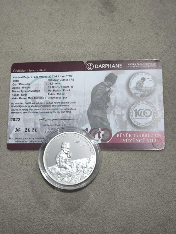 Darphane Hatıra Para Gümüş 1 Ons Büyük Taaruz Sertifikalı, en son 3 gün önce güncellenmiştir.