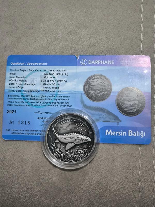Darphane Hatıra Para Gümüş 1 Ons Mersin Balığı Sertifikalı, en son 3 gün önce güncellenmiştir.