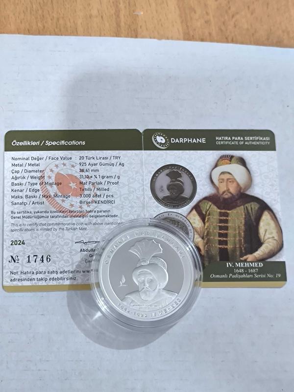 Darphane Padişah Serisi Gümüş 4. Mehmet ( Avcı Mehmed ) Çil Sertifikalı No 19, 6 gün önce satışa sunulmuştur.