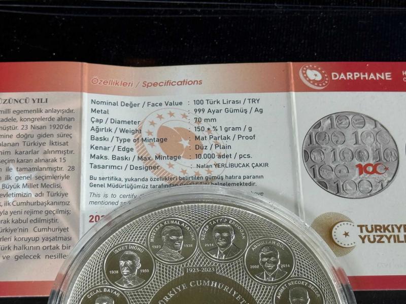 Darphane Türkiye Cumhuriyeti'nin 100. Yılı Gümüş Hatıra Parası ve Özel Ahşap Hatıra Para Kutusu, 5 gün önce satışa sunulmuştur.