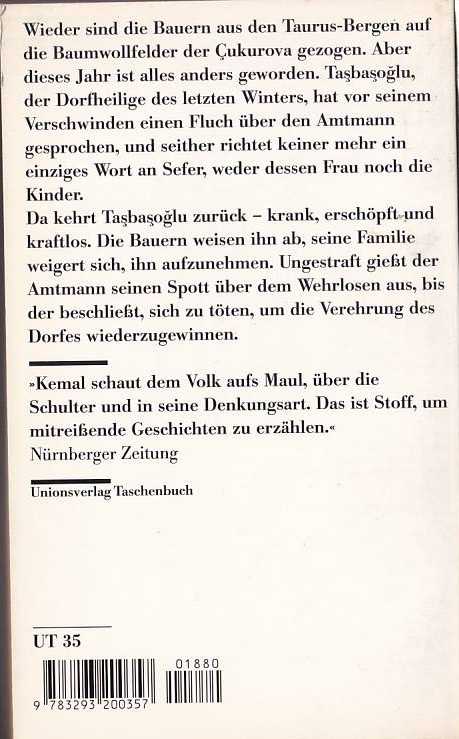 Wieder sind die Bauern aus den Taurus-Bergen auf die Baumwollfelder der Cukurova gezogen. Aber dieses Jahr ist alles anders geworden. Die steinalte Meryemce musste im verlassenen Dorf zurückbleiben. Tasbasoglu, der Dorfheilige des letzten Winters, hat vor seinem Verschwinden einen Fluch über den Amtmann gesprochen, und seither richtet keiner mehr ein einziges Wort an Sefer, weder dessen Frau noch die Kinder. Da kehrt Tasbasoglu zurück - krank, erschöpft und kraftlos. Die Bauern weisen ihn ab, seine Familie weigert sich, ihn aufzunehmen: Nein, das kann er nicht sein, der Mann, den sie zu ihrem Heiligen gemacht haben. Ungestraft gießt der Amtmann seinen Spott über dem Wehrlosen aus, bis der beschließt, sich zu töten, um die Verehrung des Dorfes wiederzugewinnen. Aber zum Schluss erfüllt sich auch am Amtmann das Schicksal: Er wird zum Opfer des Geringsten unter all jenen, denen er Schmach antat.