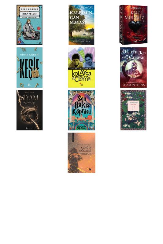 Dede Korkut Hikayeleri - Kalbimin Can Mayası - Kalp Muhafızı 2 - Keşif - Kolaysa Ağlama - Okuyucu ve Canavar - Siyam 4 - Mare - Son Bakış Köprüsü - Son Yıllar (Ciltli) - Uzağın Gölgesi Yoktur