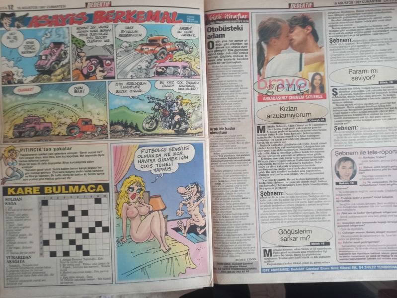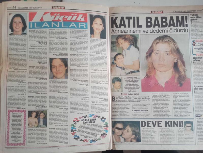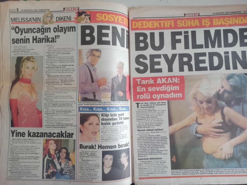 Dedektif Haftalık Aktüalite Sinema Tiyatro Müzik ve Magazin Gazetesi - 16 Ağustos 1997 - İblis! - Kapak Haberi - Göğüsümü Bozdu! - Böyle Estetik Yapılır mı! - Ayşen Kaya - Babasının Sevgilisiyle! - Ferda - Serhan Erin, Keyifler Yerinde - Tarık Akan - Ebru Şallı - Ozan Orhon - Burak Kut - Ahmet San - Beni Bu Filmde Seyredin! - Kocamın Patronunu Nasıl Ayarttım - O'nun Hikayesi - Maymun Adam ve Eni Çizgi Romanı - Sevdiğinizden Haber Var - Dedektif Kız Çizgi Romanı - Kocam Dengesiz - Hatice Gezer - Asayiş Berkemal Çizgi Romanı - Bravo Genç - Otobüsteki Adam - Küçük İlanlar - Katil Babam! - Gülender Sevil - Seval Halıcı - Uçakta Taciz - Michella - Pierro ve Petro fotoğraf ve haberi - Tam Takım Dergi Yıpranma, sararmalar, kupon kesiği ve yırtılmalar zamana bağlı olarak görülebilir