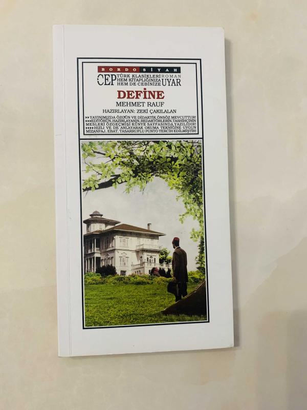 Define, Mehmet Rauf tarafından kaleme alınmıştır. Kitap Bordo Siyah tarafından yayınlanmıştır. 142 sayfadır. Define adlı eser Türkçe dilindedir.