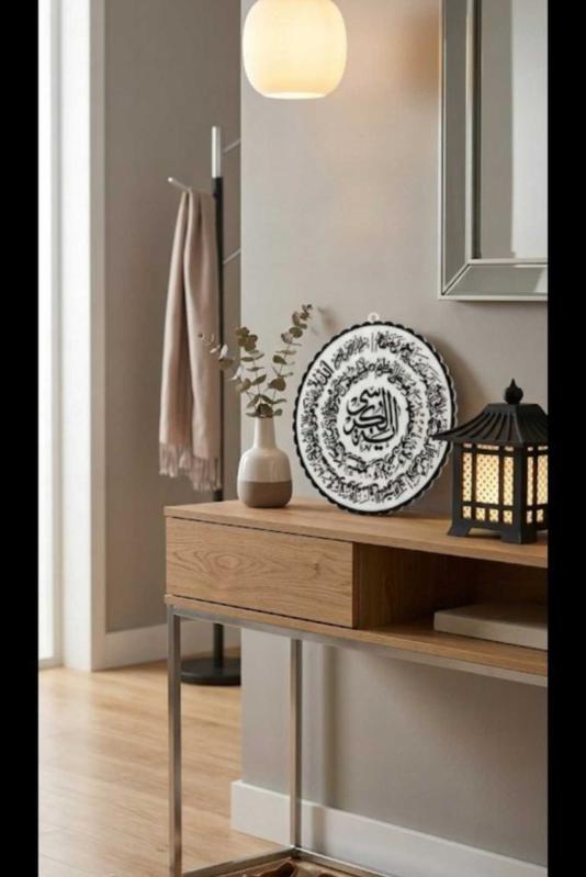 Evinize hem manevi hem de estetik bir dokunuş katacak şık tasarımlı Ayetel Kürsi yazılı dekoratif obje. Siyah–beyaz modern tasarım Kabartmalı yazı detayları Duvara asılabilir (askı aparatı mevcut) İsterseniz masa/raf üzerinde de sergilenebilir Temiz ve hasarsız durumdadır Salon, oturma odası, yatak odası veya hediye olarak tercih edilebilir. Yeni ev hediyesi, çeyiz veya özel günler için anlamlı bir seçim Ölçü: 20cm Özenle paketlenerek gönderilecektir