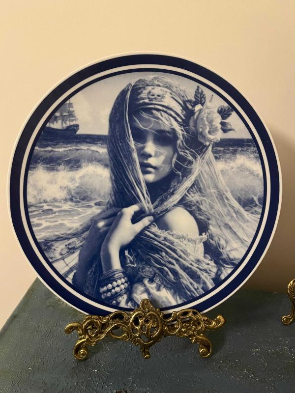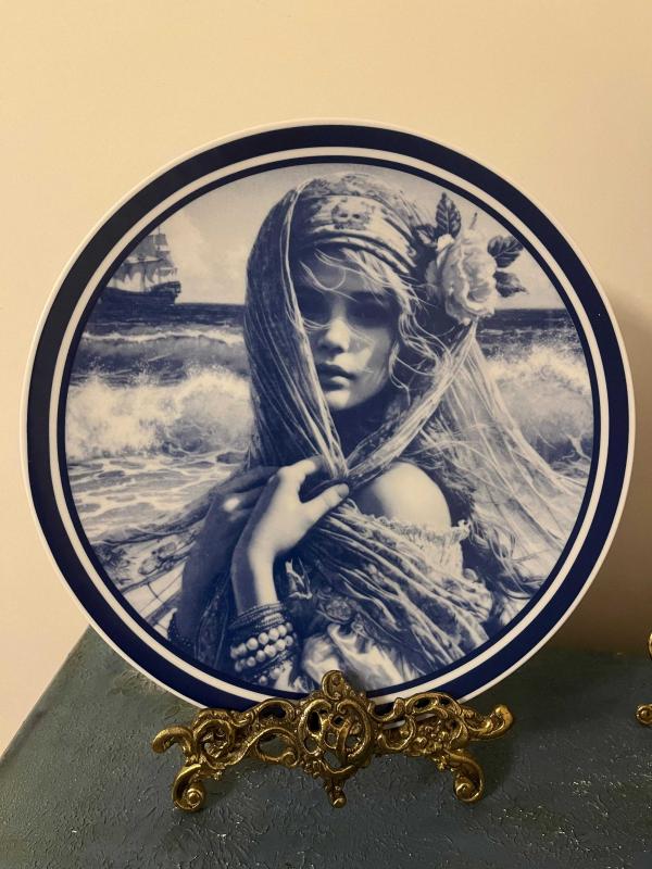 Dekoratif mavi beyaz portreli tabak 26 cm