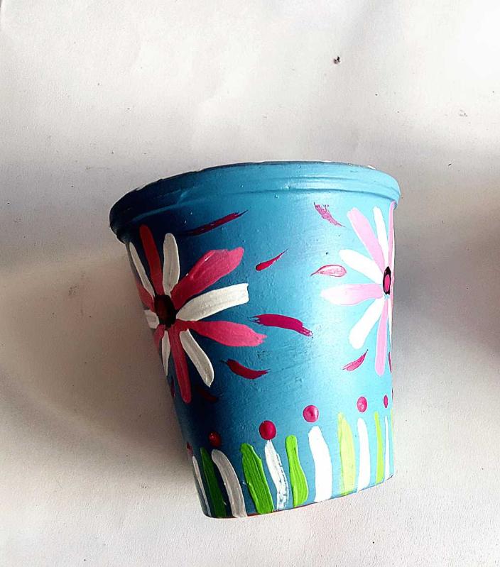 6 X 7 cm 1 adet saksı El yapımıdır. vernik atılmıstır.