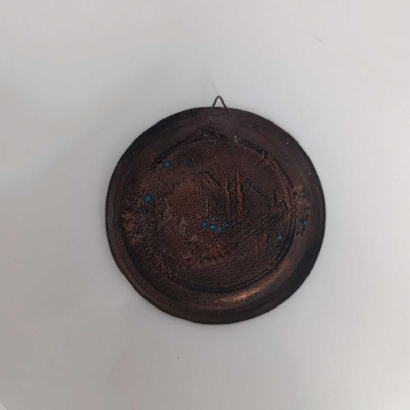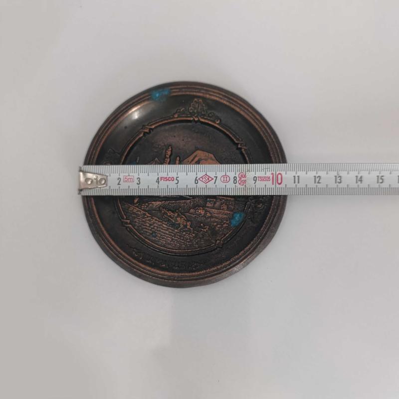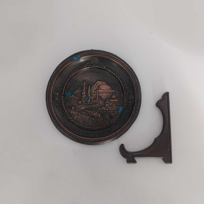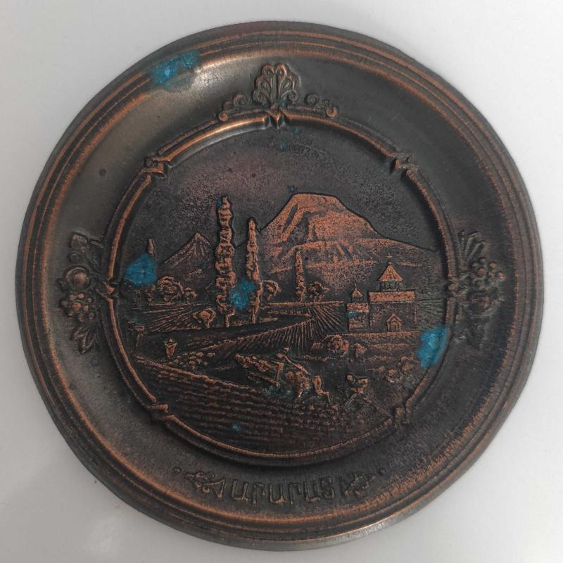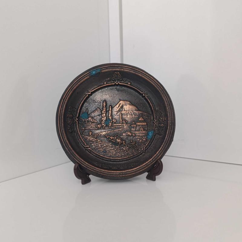 Vintage ... Ağrı Dağı ve Khor Virap Manastırı Eski Bakır Kabartmalı Tabak Masa üzerinde dekoratif amaçla kullanılabilir veya duvara asılabilir. ( 10.5 cm çapında )