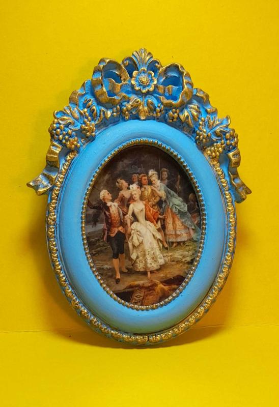 Dekoratif oval tablo İllüstrasyon başlıklı antika/koleksiyon objesinin menşei belirtilmemiştir. 2000 ve sonrası dönemine aittir.